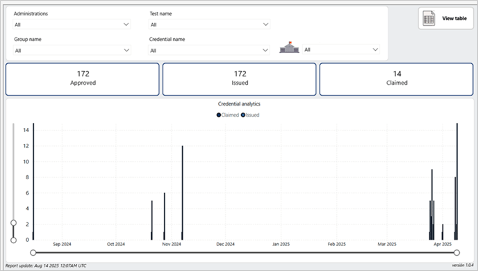 The Badge Analytic tool in Advanced Assessment Reporting is built to help administrators understand the volume of badges earned and claimed for their institution for Territorium exams.