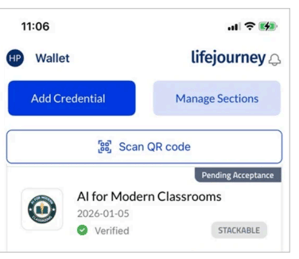 This article will discuss how you can use the LifeJourney application to earn digital credentials and claim the associated open badges to be stored in your digital wallet.