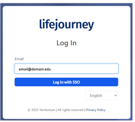 Your institution may allow you to use your existing student credentials to log in to LifeJourney using a Single-Sign-On (SSO) process. Make sure to read the instructions you receive from the institution closely to see if this has been configured.