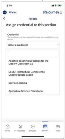 Select the drop-down menu to access credentials to add to the section.