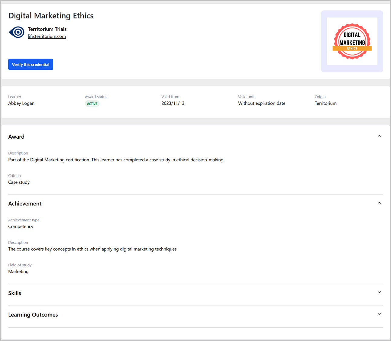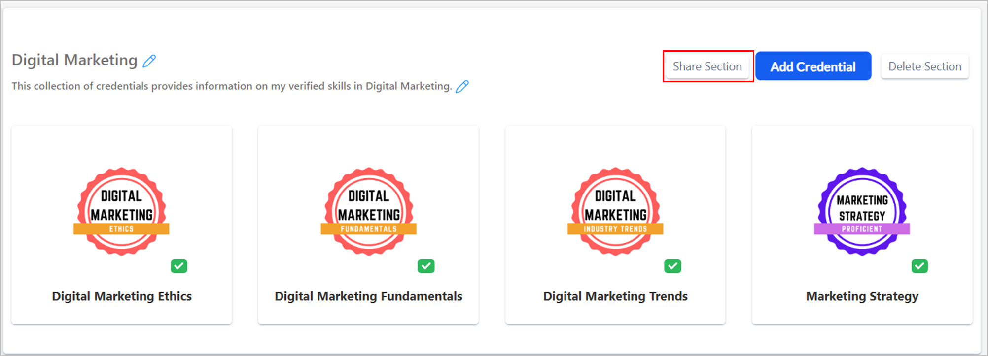 The viewer of the link can select the image of one of the credentials to access the detailed information about it.