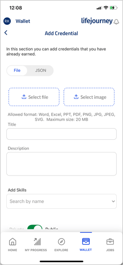 LifeJourney allows you to manage all of your digital credentials in one easy-to-use mobile application right on your phone. To import other verified credentials, digital certificates, or even photos of paper-based certificates you may have, follow the steps below.
