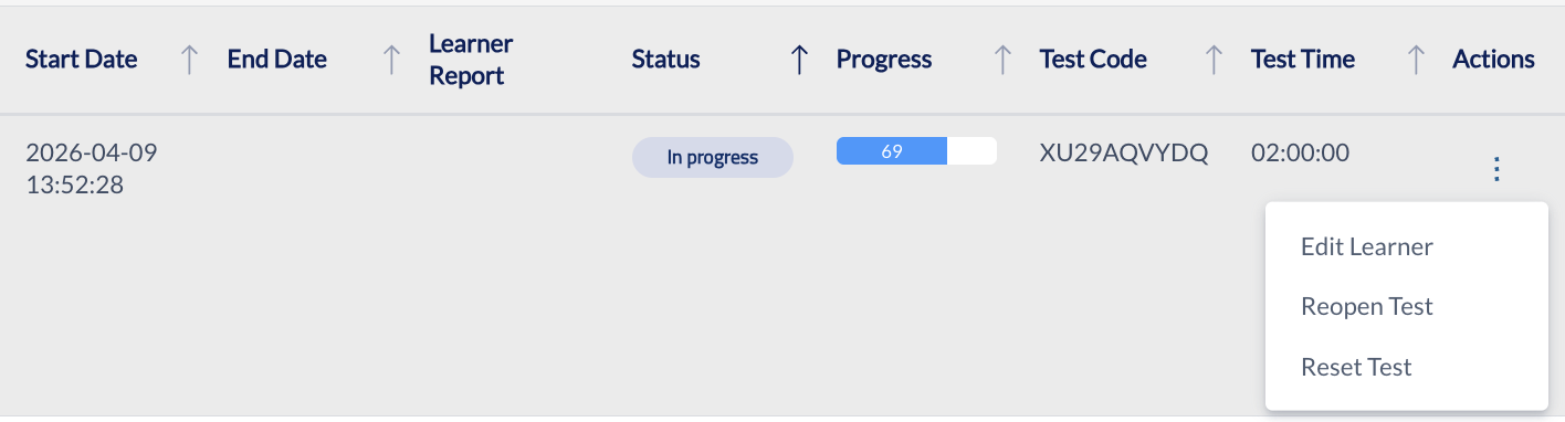 As an administrator, ensure learners complete their tests using the Reset and Reopen tools within the Administration Action functions.